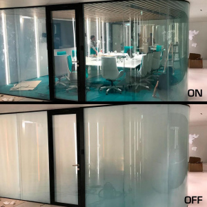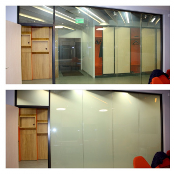 Smart стекло незаменимо для дверей ванной комнаты, личного кабинета, переговорной комнаты. Оно помогает создать атмосферу уединения или сконцентрироваться на делах, не отвлекаясь на происходящее за пределами помещения.